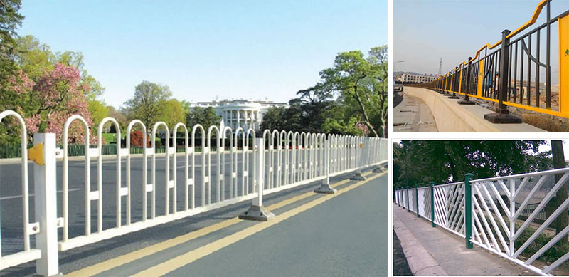 穿插型道路護欄:豎桿穿插焊接防攀爬性高,隔離人群為道路安全起到保障作用。豎桿頂端安裝PVC彈性帽,設計更人性化。精湛的焊接工藝使產品更牢固耐用、使用壽命長、款式新穎美觀大方。適用于城市交通要道、綠化隔離等。